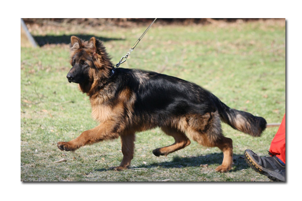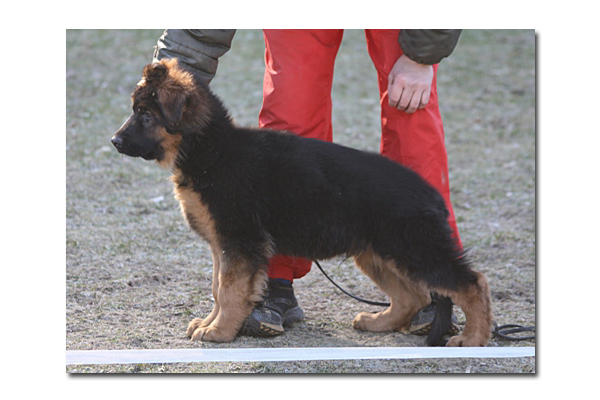 Übermittelgroßer, gut mittelkräftiger, sehr typvoller und ausdrucksstarker Rüde. Sehr gute Gebäudeharmonie, sehr gutes Gepräge. Hoher Widerrist, sehr gute Länge und Lage der Kruppe. Gute Brustbildung, ausgeglichene Brustverhältnisse. Sehr gute Winkelungen in Vor- und Hinterhand, gerader Stand. Korrekte Trittfolge, sehr kraftvolle und raumgreifende Gänge, bei sehr guter Gesamtfestigkeit und gutem Ellenbogenschluss. Fast sehr gute Felllänge, gleichmäßig langes Haar mit viel Pigment.